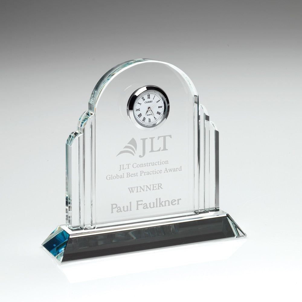 Looking for a corporate award with a difference. This delightful glass time peice could be just the award you are after. A long lasting reminder of any achievement. You can also upload a logo or emblem, that can be engraved on this award.