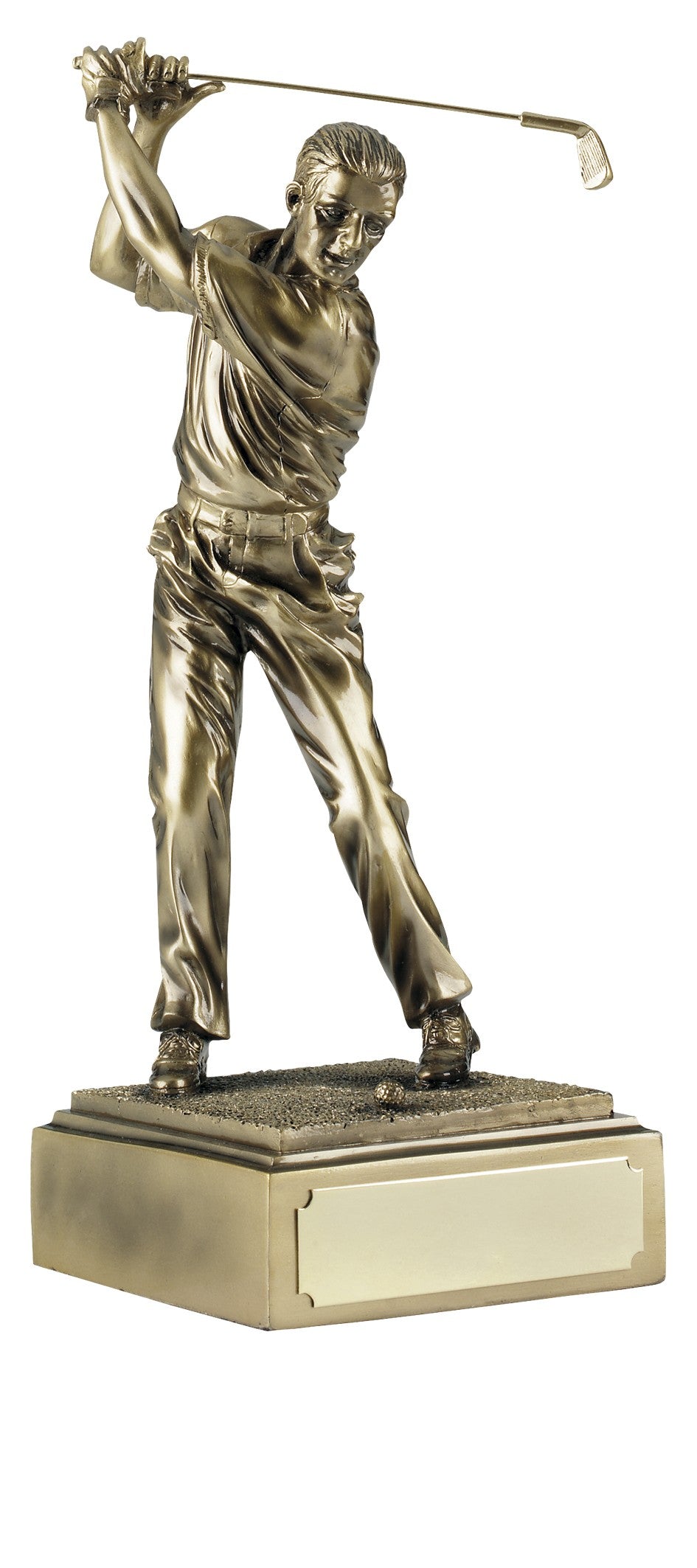 An inexpensive cricket accessory trophy displaying bat, ball, head guard and wickets against a resin frame with a floral base. Can be personalised on the 25mm centre and engraved on the base free of charge.