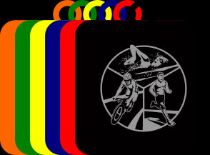 50mm square triathlon medal made from 3mm thick Acrylic. These medals are ideal as participation awards, as well as being easy on your wallet.