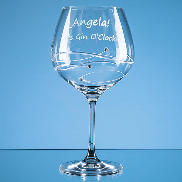 610ml 'Just For You' Diamante Gin Glass with Spiral Design Cutting