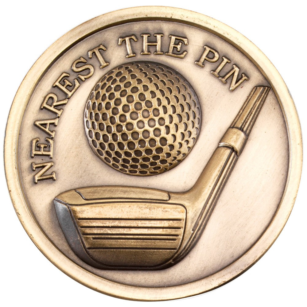 7cm Golf Medallion - Antique Gold Nearest The Pin 2.75In