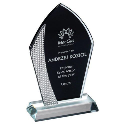 178mm Black Backed Clear Glass Arrowhead With Silver Detail