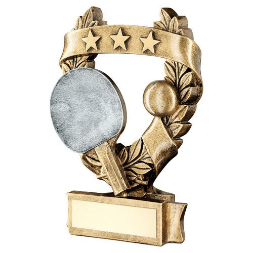 Brz-Pew-Gold Table Tennis 3 Star Wreath Award Trophy - 3 Sizes