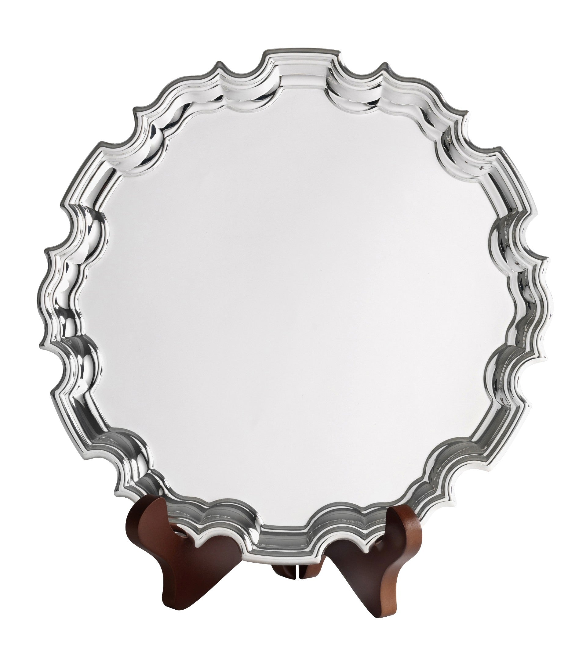 The Chippendale silver plated Tray is available with or without feet (see CN1506 series for the with feet range). This product comes with out feet but with a stunning presentation case and optional stand. Available in three sizes. Ideal for that special gift or recognition.