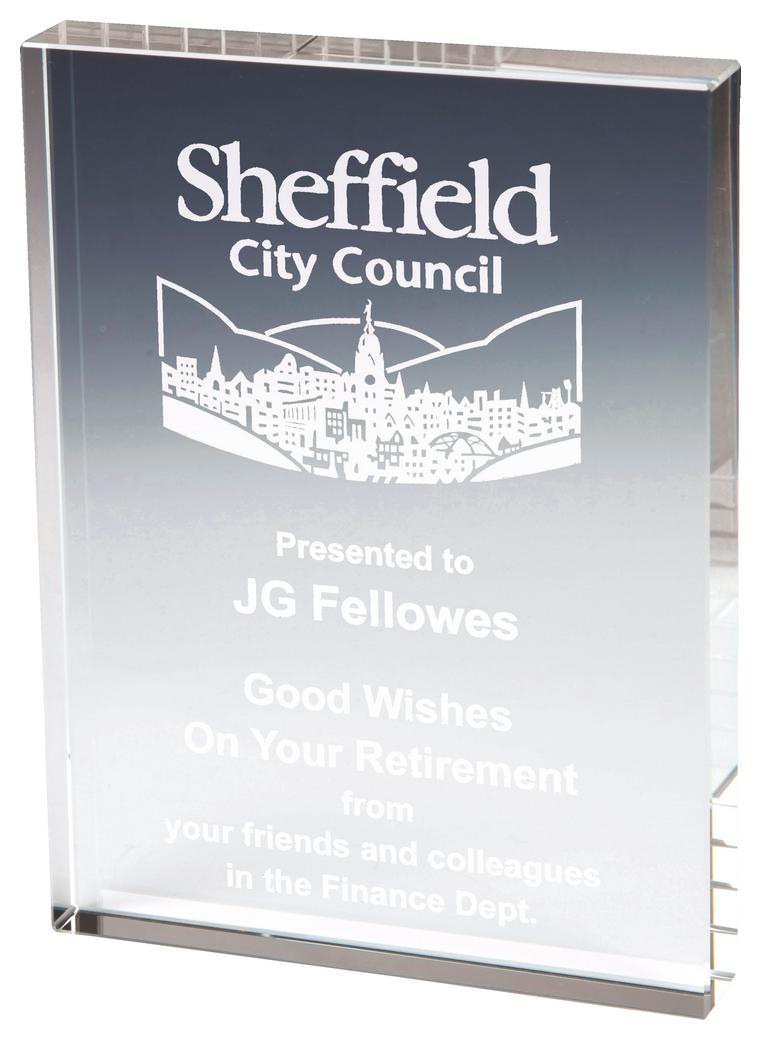This 14cm high plaque is the perfect award wonderfully shaped in a crystal finish. It will be received and displayed with pride. An alternative to award engraving is printing in colour on this award. Perfect for corporate awards where you need to meet specific brand requirements.