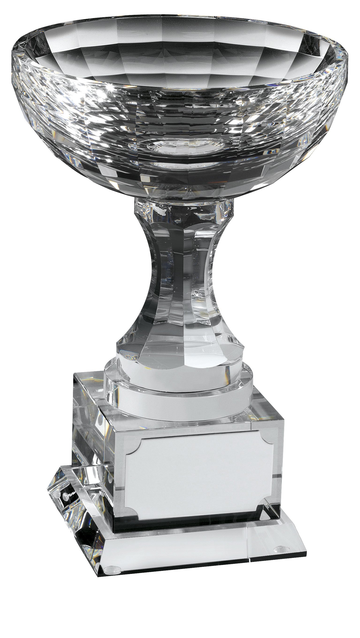 This beautifully cut optical crystal trophy cup is available in 6 different sizes and is ideal for any award presentation. With an engraving plate on the base, a suitable message can be added to your specifications. A handsome presentation box is supplied with this item