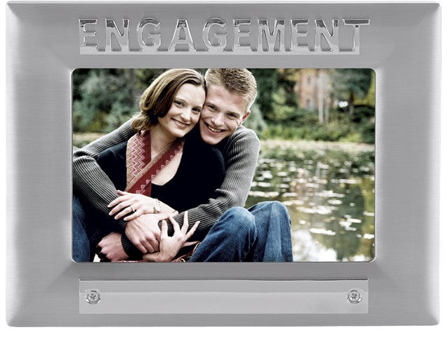 We are proud to offer this modern and well-designed photograph frame dedicated to recalling an ENGAGEMENT. Constructed in metal with a satin finish it has the letters ‘ENGAGEMENT' in 3 dimensional relief. It really is a stunning frame. Quality of construction was the aim in the production of these fine frames. they are designed to last for many years displaying your precious memories or images of loved ones. An engraving plate on the front of the frame allows you to change this item in to a truly personal gift that will be truly treasured.