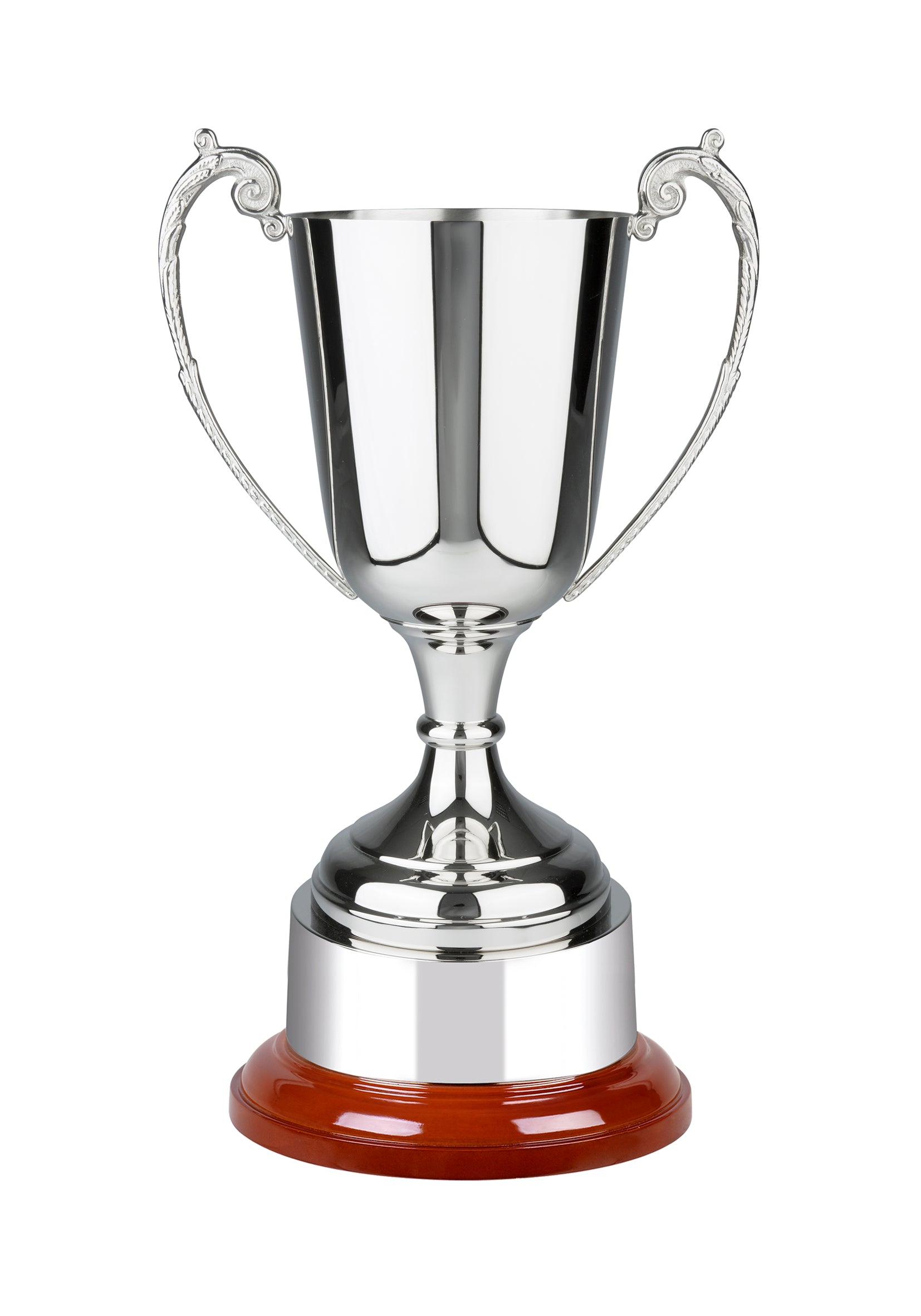 Search no further for a genuinely superb cup. Its 42.5cm high with its impressive nickel plated nickel plated finish makes it award a fit for any praiseworthy individual or team. A trophy that will take pride of place for years to come. Engrave this product on the body and the plinth if you wish. See the options below or call to discuss your requirements.