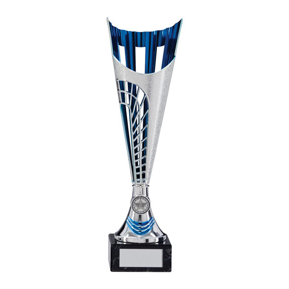 Garrison Plastic Laser Cut Cup Silver & Blue - Available in 5 Sizes