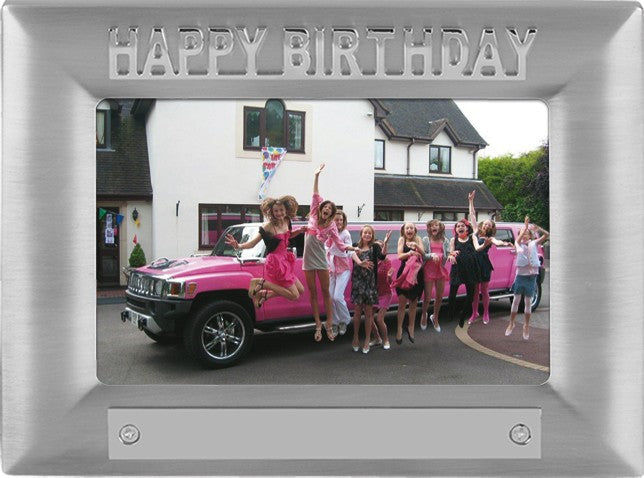 Constructed in metal with a satin finish it has the letters 'HAPPY BIRTHDAY' in 3 dimensional relief. Quality of construction was the aim in the production of these fine frames, they are designed to last for many years displaying your precious memories or images of loved ones. An engraving plate on the front of the frame allows you to change this item in to a truly personal gift that will be truly treasured.