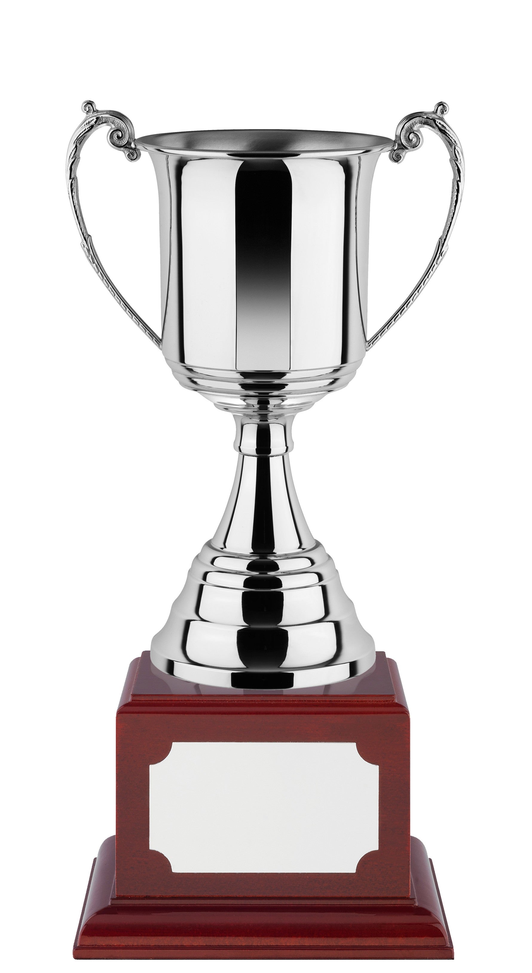 This 41cm high presentation cup with nickel plated finish would be perfect to award to any winning individual, mark a team achievement or present to any runner-up. It's attractive finish and superior design, will makes any achievers efforts worth while. You can engrave this product on the body and plinth, see the options below for costs. Please call us if you have specific requirements.