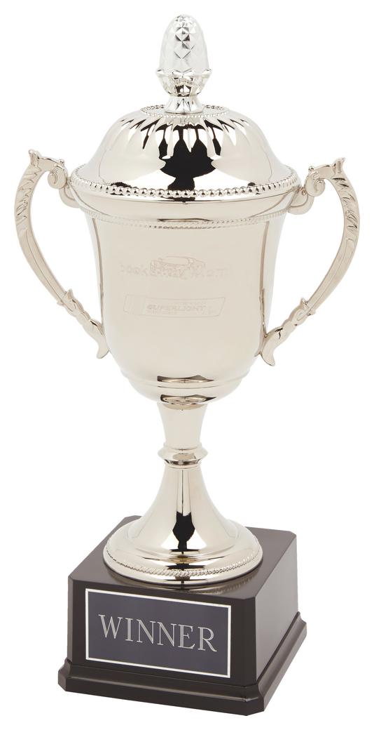 Want a winner’s trophy fit for a champion? Then this is the award for you! At 41cm high this exquisite silver nickel plated cup will mark any significant achievement with style. Surely any commendable winner will be blessed with a serendipitous feeling when receiving this delightful award. Plate engraving is always FREE, however to engrave this cup on the main body, there will be an additional charge. See the available options and enter your message, by clicking customise and buy.