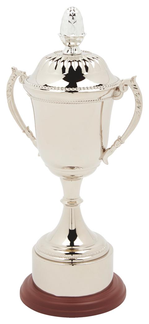 Nickel Plated Trophy Cup With Plinth Band & Lid