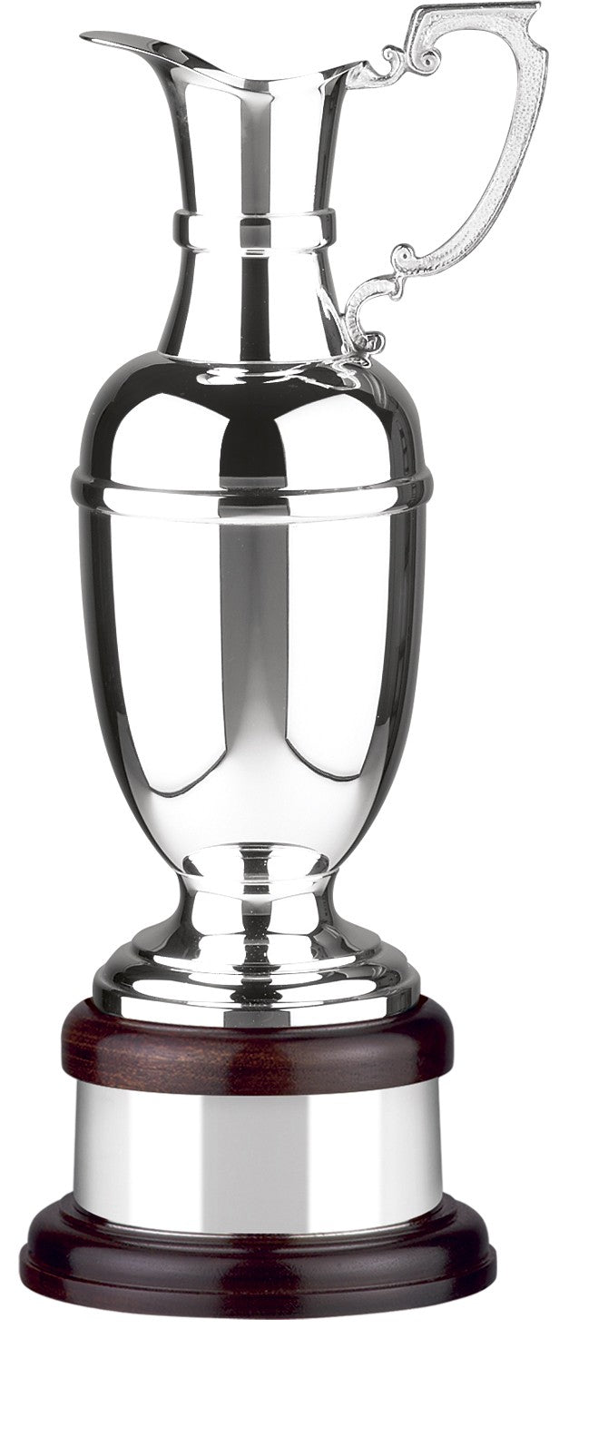 Complete with mahogany plinth and plinth band stands proudly this beautiful silver plated St Anne's Claret Jug. Hand made by quality craftsmen this award is perfect for any Golf organisation. Can be engraved with text on the body or the base of this stunning award.