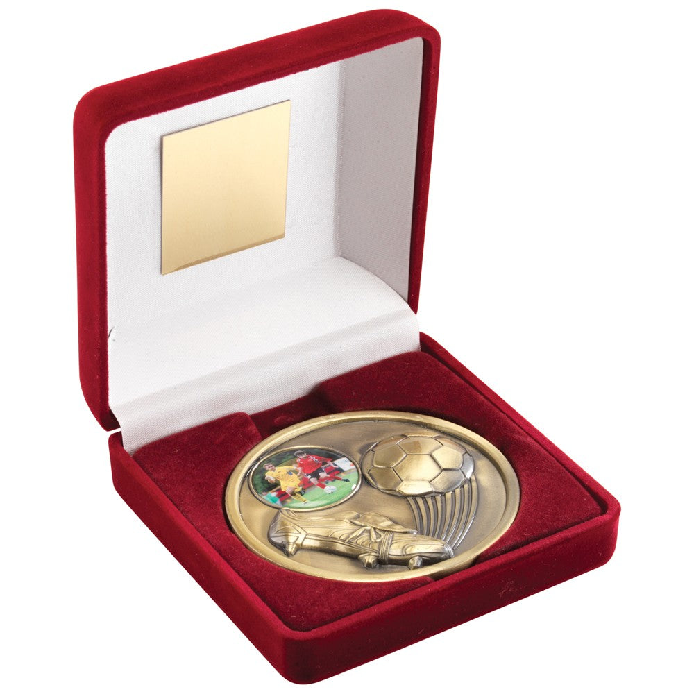 A 7cm diameter antique gold football medal, complete with case, is perfect to mark the winners and participants of any event. We have a huge range of medals. Contact us to discuss your requirements. Tailor your award further by selecting from our available centres. Plate engraving is FREE of charge on this product. Simply enter your engraving details after clicking Customise and Buy.