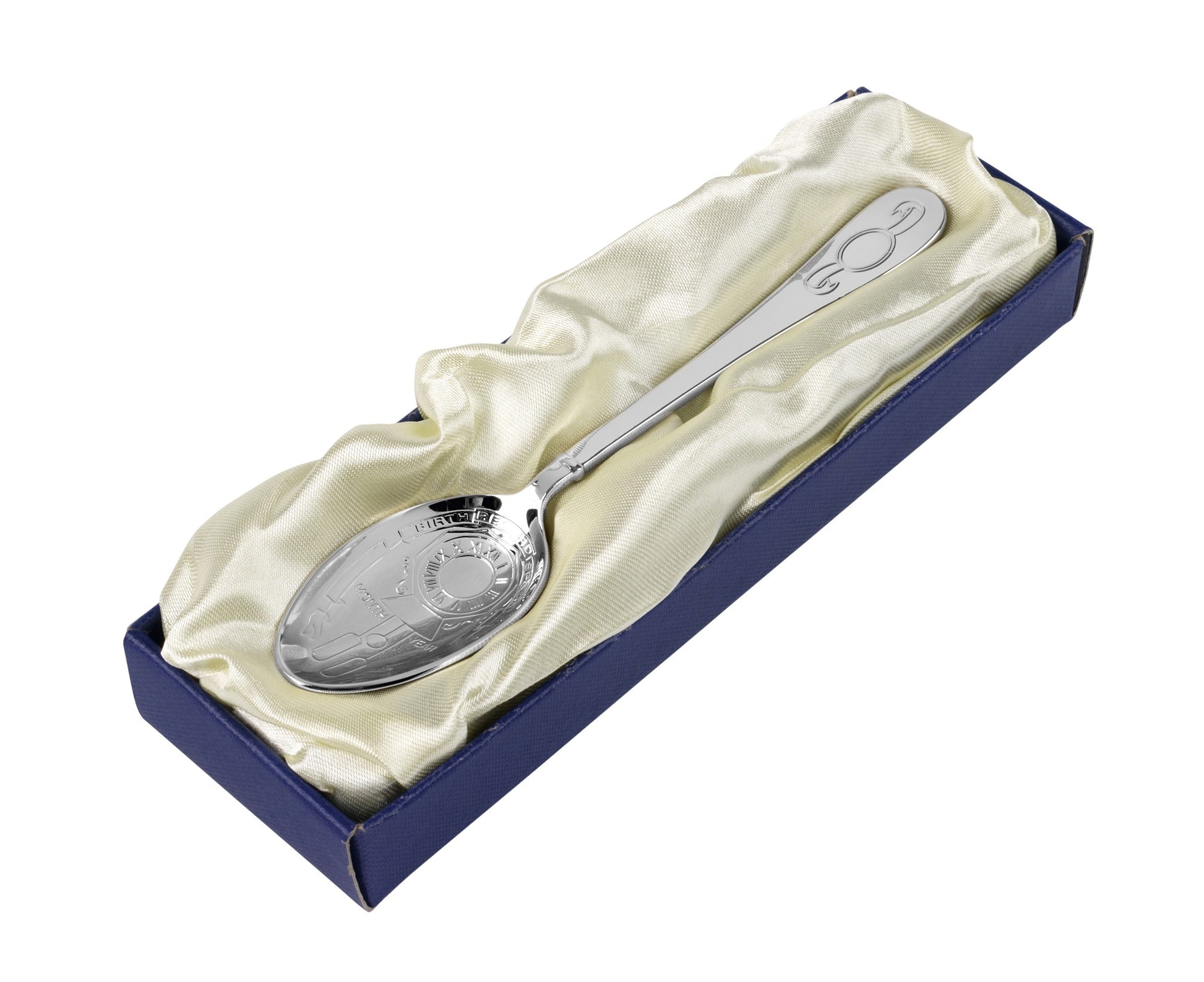 A classic choice from our range of christening gifts, a silvertone birth record spoon, 6 inches long supplied in a satin finish lined presentation box. Ideal for engraving with time, date and weight of baby's birth, please include details when you order online