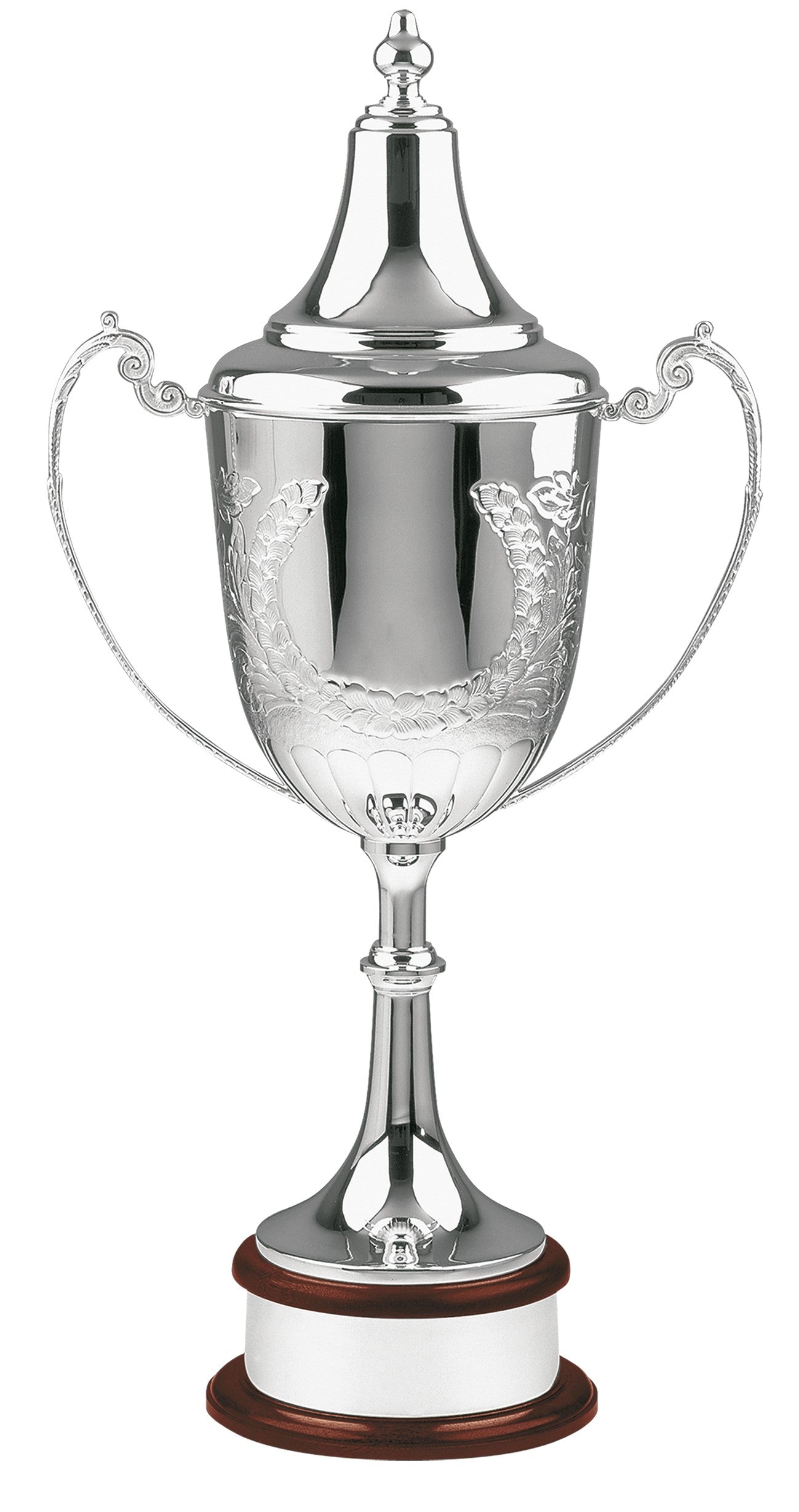 The Champions Cup standing an incredible 32" in height is by far the largest British made cup available. Hand chased with an extra large laurel wreath on both the front and back makes this award a true masterpiece. Supplied with a life time warranty this stunning cup can be engraved with any text suited to your requirements. only.